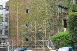 教会の外壁につたって工事用の足場が組まれ始めました。