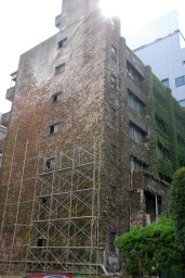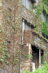 教会の建物を覆っていたツタの根本が切られたためか、少しづつ枯れて葉っぱが垂れ下がっているのが分かります。