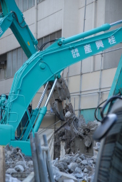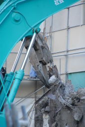 更にアップしてみると、重機の大きなはさみで建物の梁を引き抜こうとしている様に見えました。