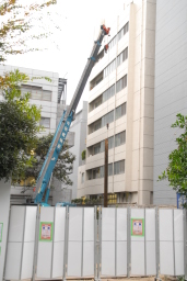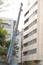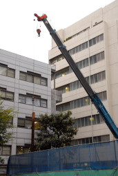 現場の入口が閉まっていた為、あまり中の様子は分かりませんでしたが、何やら特殊な機械である程度引き抜き、それをクレーンで吊り上げているようでした。