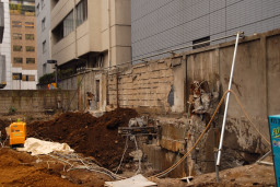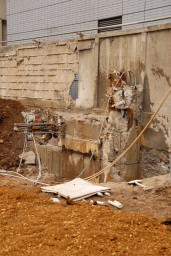 | 「9月28日」の頁でも触れた梁と外壁の一部と隣接する塀との切り離し作業がスタートしました。 | |