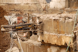 | この作業は重機を使用することが出来ないため、ダイヤモンドカッターという特殊な機械を使用して行なわれました。 | |