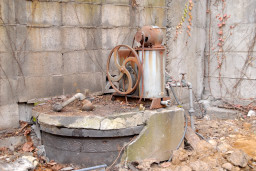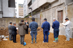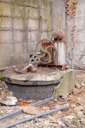 | 右の写真がその井戸ですが、水がまだ残っていて使用可能という状態のことを神道式では「まだこの井戸は生きていて、お祓いもせずに井戸を埋めてしまうと井戸神様が怒ってこれからの工事に支障を来たす」と言うのだそうです。 一般的に家等を建てる際には必ずと言って良いほど神主さんを呼んで地鎮祭を執り行ないます。それをキリスト教式では「起工式」として執り行っていますが、井戸を鎮めるための式というのはこれまで聞いたことがありませんでした。 |