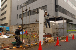 | この日は建設工事をする際に必要な仮囲いの設置が行われました。 | |