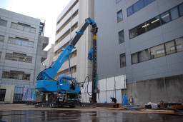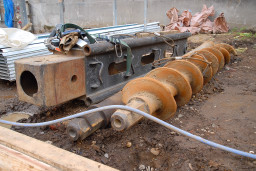 | H型鋼を打ち込む際に重機に取り付けて使用する機材。 | |