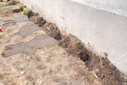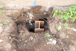 | 敷地ギリギリの所でH型鋼の打ち込みが行われた穴が並んでいます。 | |