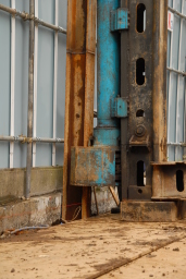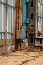 | 次にそのH型鋼のある部分を、打ち込むための機械にはめ込みます。 | |