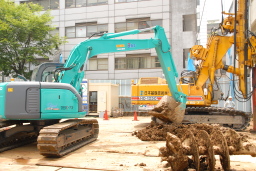 | この日は電気工事と並行して、以前の建物の基礎部分の撤去作業も行われました。 | |