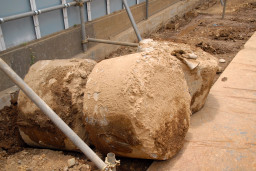この週行われてきた既存躯体の撤去は無事終了し、綺麗にくり抜かれた古い基礎部分だけが敷地の脇の方に置かれていました。