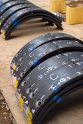 | こちらは杭と杭をつなぎ合わせるための鉄板。こちらは前回ご紹介したものよりも大型のものです。 | |