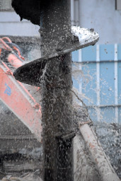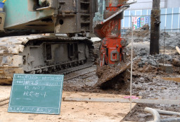 | この日も杭打ち用の掘削が行われていました。 | |