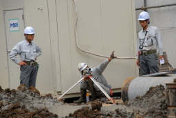 | 早ければ今週いっぱいで杭打ちが終了し、来週には杭打ち機の搬出が行われます。暑い中本当にお疲れ様でした。 |