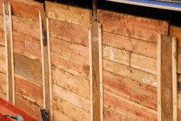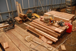 | 土留めに使用する板は、このように一枚一枚切り出されています。 | |