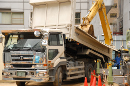 次から次へとダンプが出入りしていました。 |