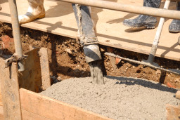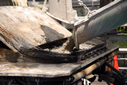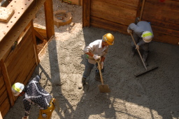 | こちらは搬出されたコンクリートを固まる前にならしているところ。 | |