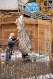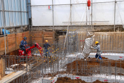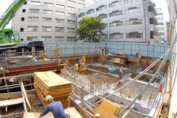 | 今日の現場外観。まだまだ地下部分の作業ですが、これから間もなく地上部分の建設が始まって行きます。 |
