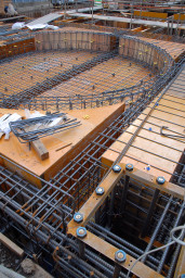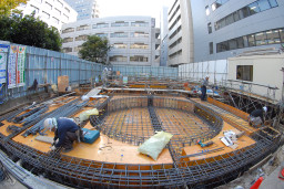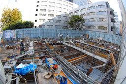 | ご覧のとおり、エントランスに設置されるターンテーブルの骨組みも出来上がり、着々と工事が進められていることが伺えます。 | |