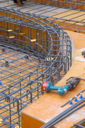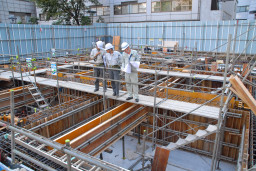 | 作業と並行して、監督さんたちによる進行状況のチェックや鉄筋の太さや数が規定通りに行われているか等のチェックも行われていました。 | |