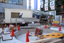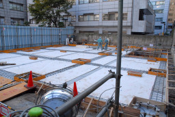| 先週までは地下部分がむき出しになっていましたが、1階部分がすっかり覆われています。 | |
