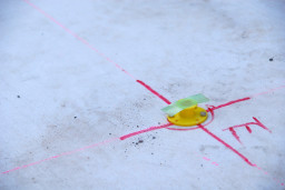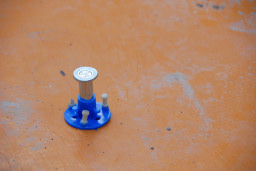 | こちらは型枠の上に敷かれたポリウレタン状のものの上の所々に取り付けられていた器具。 | |