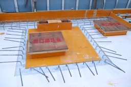 | こちらは、設置された型枠の所々に等間隔で取り付けてあったもの。型枠を固定するためのものなのか、この後に取り付けるスラブ配金と何か関係があるのか、詳細は分かりませんが、とにかく大切なものなのでしょう。 | |