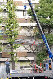| これまで使用してきた足場や使用済みの型枠などの回収作業も行われていました。 | |