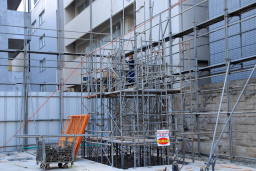 エレベーターシャフトを始め、敷地全体を取り囲むかのように次々と足場が組まれていきます。