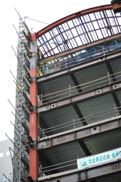 | まだ敷地奥の部分だけですが、既に各階の床が取り付けられ建物らしくなって来ました。 | |