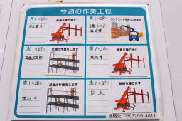 | 今週の作業工程表によれば、今日は柱の溶接と立体駐車場へコンクリートを流し込む作業が行われていることになっていましたが、この時には既にコンクリートを流し込む作業は終わっていたようでした。 | |