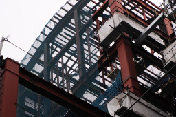 | 全体の骨格となる主な鉄骨の組み立ては終わったようで、今週からはこれまでよりは細かい部分の鉄骨の組み立てやその溶接作業が行われているようです。 | |