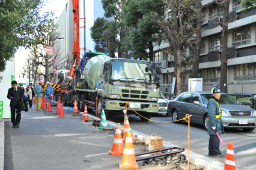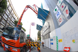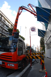 次から次へとミキサー車がやって来ては手際よく生コンを流し込んでいました。