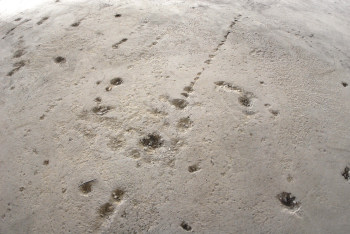 | コンクリート打ちされた床にはこのような窪みが所々に見られました。 よ〜く見てみるとなんだかナスカの地上絵みたいにも見えてきませんか?! |