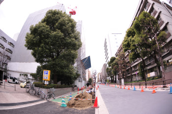 | 教会を境に御茶ノ水駅方面の歩道は まだ整備は終わっていないようで、 部分的に歩道の土が掘り起こされていました。 |
