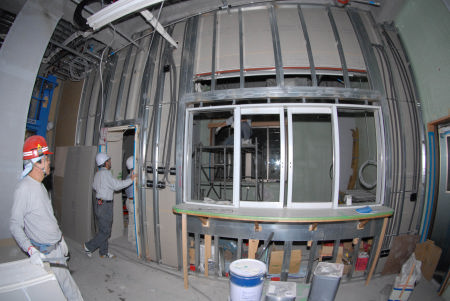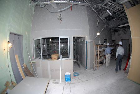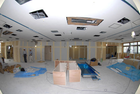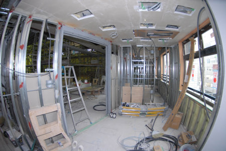 | 前回来た時には壁材も天井もない骨組みの状態でしたが、今回は既にそれらが設置されていたため、より奥行き感が感じられました。 | |