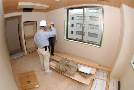 | こちらはバルコニーです。 この日はまだ手すりが設置されていなかったため外に出ることは出来ませんでした。 |