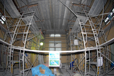 | この日は天井の工事が行われており、このように頭上には足場が組まれ、天井までは見ることが出来ませんでした。 | |